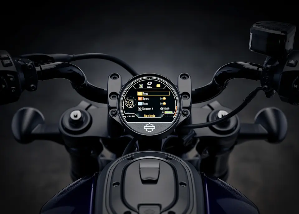 | Gauges | 4 inch viewable area TFT display with speedometer, gear, odometer, fuel level, clock, trip, ambient temp, low temp alert, side stand down alert, TIP over alert, cruise, range and tachometer indication BT capable – phone pairing to access phone calls, music, navigation (H-D App ONLY) |
